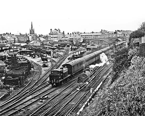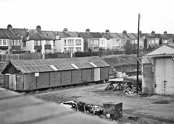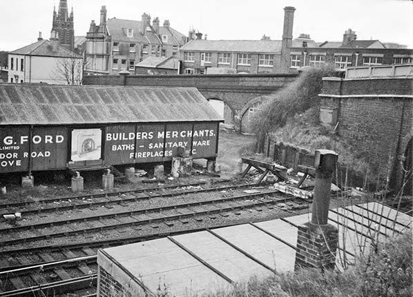 ![]() Holland Road goods yard in October 1961. The yard occupies the site of the first Hove station and good yard. The station was top right, beyond the shed with the curved roof. Ex-LB&SCR E4 0-6-2T 32468 is seen shunting workmen's coaches (The Lancing Belle) at Holland Road Goods Depot, Hove in October 1961. The cramped situation of Brighton railway works and the lack of space to expand was a constant problem for the chief engineers of London, Brighton and South Coast Railway. In 1910 the company purchased 66 acres of land at Lancing near Shoreham for a carriage and wagon works to relieve the pressure on Brighton. The works were constructed in 1911 and opened the following January with many employees transferred from Brighton. Because of the rural situation of the new factory the railway operated a special daily train from Brighton for the workforce. This became known as the Lancing Belle. A ghostly Ex-SR N 2-6-0 31871 is passing by. Hove power station stood beyond the yard to the left and was served by the siding seen at extreme left. St. Cuthbert's church is seen in the background. It stood on the corner of Holland Road and Cromwell Road and was demolished in 1984 and a block of flats named Bellmead now stands on the site. Click here for a larger version. Photo by Ian Noble from his Flickr photostream ![]() 1852 map. ![]() ![]() Looking east at the site of Hove station on 27 December 1971. Holland Road goods yard closed on 14 June 1971. The shed in the foreground is on the site of the station building.