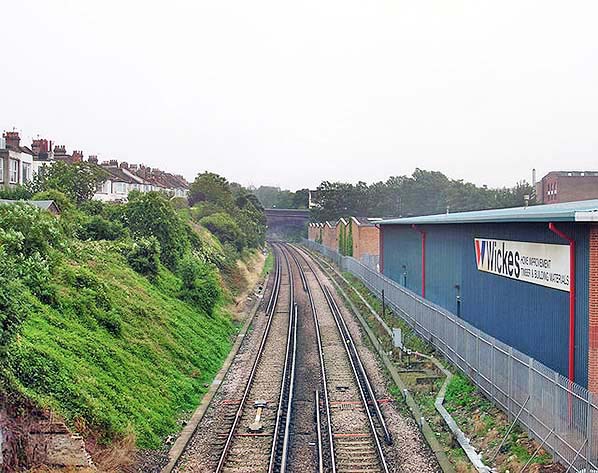 Photo by Ian Noble from his Flickr photostream ![]() The site of Hove station looking east in September 2006. The Wickes store now occupies