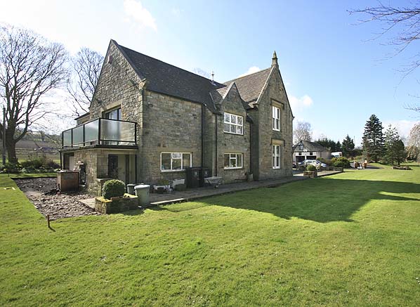 Humshaugh Station seen from the goods yard in April 2009. The extension to the original station house is seen on the left.