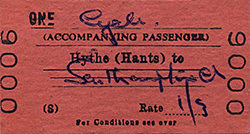Photo from Waterside Heritage ![]() The first up train, i.e. from Fawley, is seen at Hythe station on the opening day 20 July 1925. The locomotive, partly visible here, was an Adams Class O2 0-4-4T from the 'stovepipe' batch - a reference to chimney style. Note the platform lighting with barley-sugar twist standards and swan-neck brackets, electrically lit from the outset. Provision of electricity was hardly surprising given the industrial nature of Hythe, but was in total contrast to Fawley station which was oil lit at the outset. Notwithstanding this photograph clearly involving a degree of posing for the camera, the calling of branch line trains at stations during this era could be a leisurely affair. This is in contrast to today where there is an ever present feeling of urgency and trains with power-operated doors having a typical dwell time of thirty seconds at intermediate stations. A few people on the platform at Hythe are 'seeing off' friends or relatives but it is impossible to tell how many people actually boarded the train. As always, staff are plentiful and apart from the gentleman facing the camera there is a staff gathering near the locomotive.