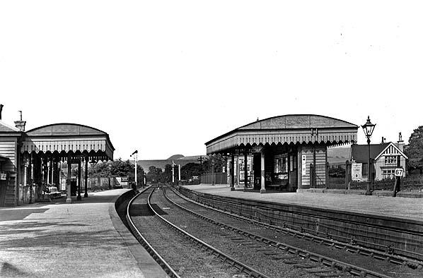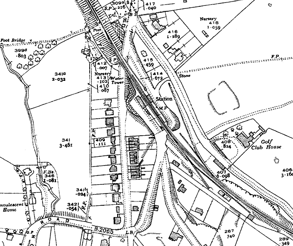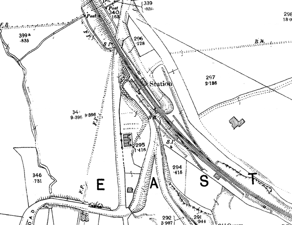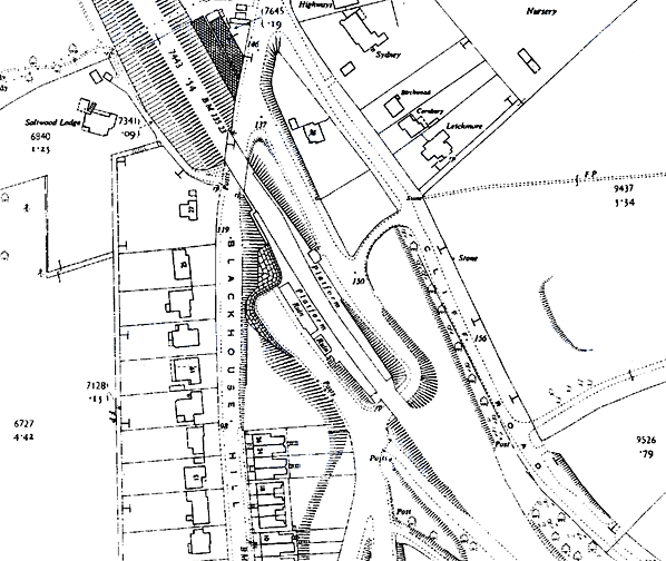 The station was built into the side of the hill with massive stone retaining walls on the south side as the land dropped sharply; these can still be seen. The station was sited between two bridges, Blackhouse Hill to the west and the station approach road (the southern section is now a continuation of Station Road) to the east. There were two facing platform with road access to both. The main station building was on the up side where there was a forecourt off the approach road with steps up to the station entrance. The platforms were faced with timber.