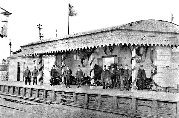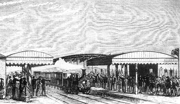 On the opening day, the departure of the first public train at 10am from Sandgate was somewhat muted with few local residents boarding the train; not even the chairman or members of the local board had bothered to put in an appearance. It was a different story at Hythe where the train was met by an enthusiastic crowd at the lavishly decorated station. Having travelled on to Ashford the train, by now packed, made the return journey to Hythe in time to see the arrival of the Royal Train which brought members of the SER board, SER chairman Sir Edward Watkin (who was elected MP for Hythe on 4 February that year) and the Duke of Teck who had agreed to perform the opening ceremony.