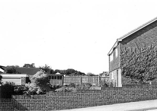 The station site was cleared and redeveloped in the 1960s with new housing covering the station site. This view is looking north-west from the site of the Station Road bridge in September 1979.