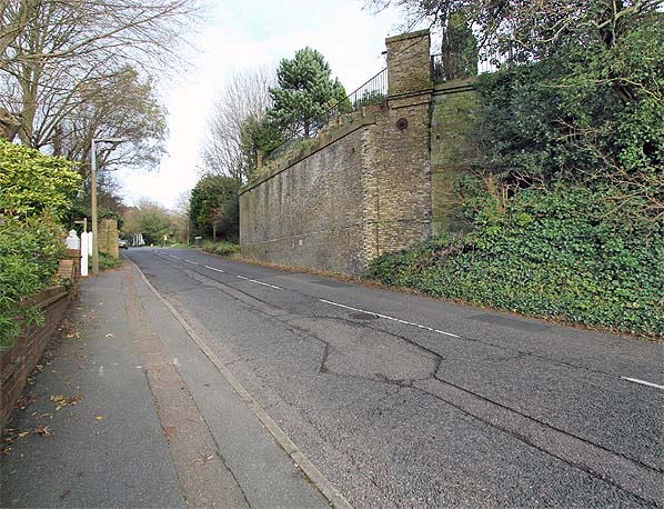 Looking north along Blackhouse Road at the massive bridge abutment in April 2014; the station