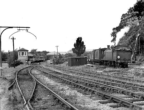 31521 is seen shunting in Hythe yard in August 1951. The 30 cwt yard crane is seen on the right between two sidings. The coal yard was on the right, but the sidings on the left which served the livestock dock (behind the photographer) have already been taken out of use and lifted. Although closed in July 1931 the signal box survived until closure of the station.