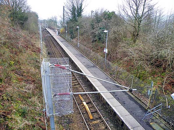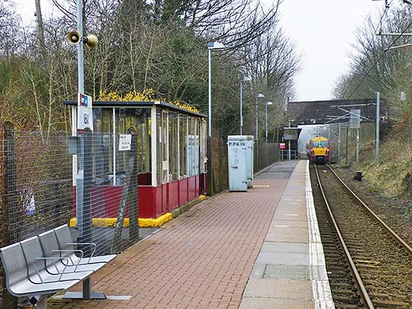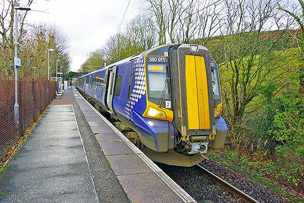 Photo by John Mann ![]() Looking north-east as Glasgow Central bound class 334 EMU No. 334017 pulls out of IBM station in March 2009.