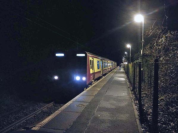 Photo by Rob Davidson ![]() ![]() Class 314 EMU No. 314216 arrives at IBM on 8 December 2018 forming the 23:48 service to Glasgow Central. This was the last passenger service to stop at the station. Many stations have large numbers of enthusiasts boarding the train; at IBM there were two including the photographer! The Class 314s are due to be retired in 2019, when delivery of Class 385s allows for the Class 318s and Class 320s to be used on to lines previously operated by the 314s.
