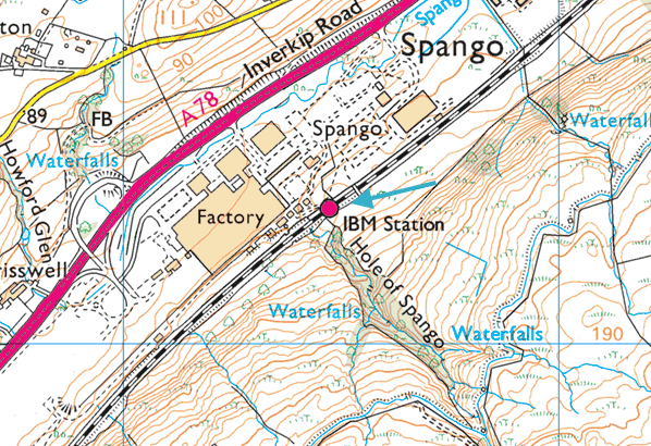 Photo by Thomas Nugent, reproduced from Geograph under creative commons licence ![]() IBM station looking north-west from the old farm accommodation bridge to the east of the station in March 2009.