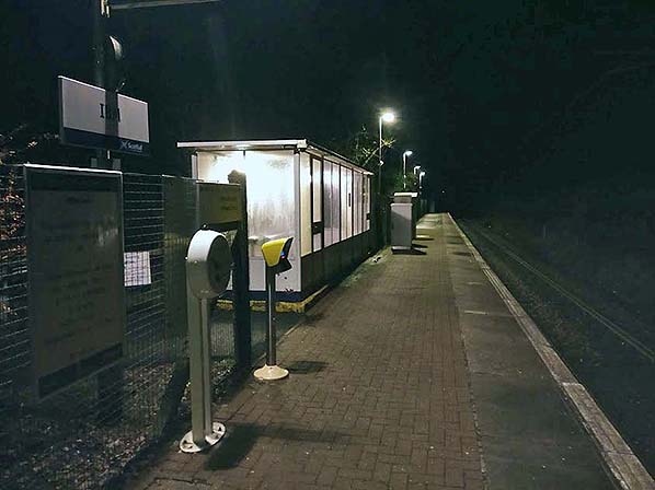 IBM station looking north-east on 8 December 2018. The photographer arrived at IBM on the penultimate train and waited on the platform an hour for the final train, the 23.48 service