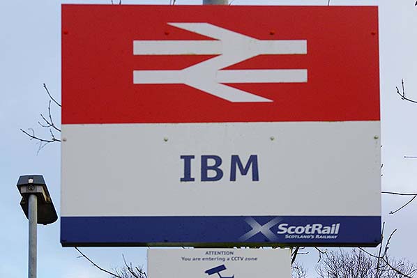 ScotRail sign at the entrance to IBM station on 29 November 2018