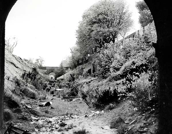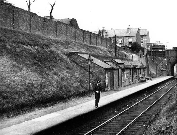 The 2nd station at Icknield Port Road opened during 1897 and replaced the original station on the opposite side of Icknield Port Road. The new facility was reached via a short ramp from Icknield Port Road and comprised a lengthier platform than the original with extremely unpretentious single-storey buildings all within an excavated section of the cutting and with a large retaining wall around them. A brick-built store had a pent roof, sloping down towards the platform, and the other three buildings are thought to have been of timber construction with pitched roofs. The facilities provided were a booking office, gents’ toilets and ladies’ waiting room.