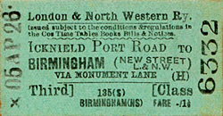 The frequent service continued until the end of World War I when three factors started to affect passenger numbers, although the first two had been in operation for several years. The first was the LNWR’s practice of holding the branch train at the junction with the main line even if an express train was late. This delay was followed by the mandatory ticket inspection stop at Monument Lane station, as New Street was an ‘open’ station. As a result the 7-minute journey from Icknield Port Road to Birmingham would often take considerably longer. The final factor came in the shape of competition from the local electric tram car route 34 running along Icknield Park Road and directly passing the station entrance.