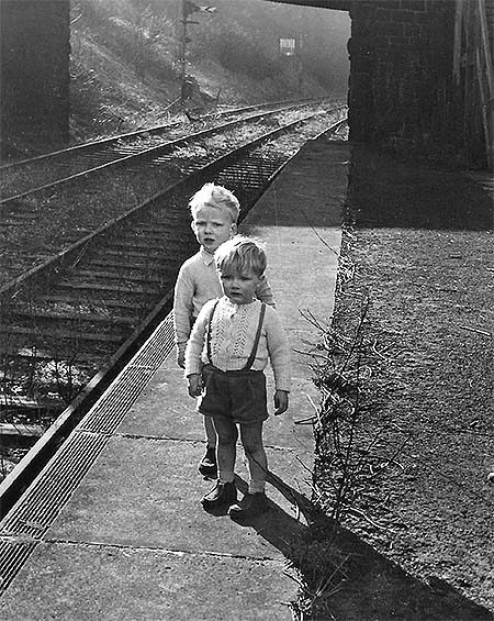 Hardaker children on the derelict platformat Ingrow East in Februaryn 1962