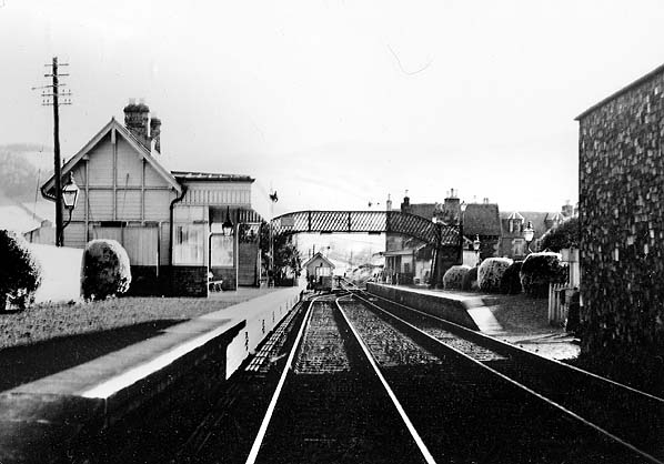 Innerleithen station looking east in July 1956. The goods shed is seen on the right.