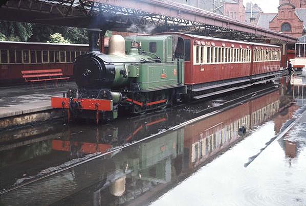 Photo by Jon Sabey-Corkindale By 1965 the railway was in a very bad state as there had been little investment in infrastructure for years. The permanent way was in dreadful shape and needed urgent repair. On the 13th November 1965 the entire network closed with very little warning. The reason given was that repairs needed to be carried out. No repairs were undertaken and the line remained closed in 1966 apart from the Diesel Railcars being used as a hospital train for the TT Races. St Johns station was actually used as a car park. Douglas Station during floods in June 1968