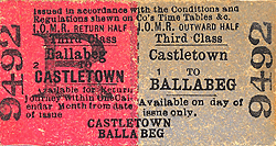 building was fully restored in 1994. Photo by Paul Wright Click here for a timetable for the entire network in July 1964 Further reading: Isle of Man Classic Steam by Robert Robotham published by Colourpoint 1998. Old colour photographs of the Isle of Man Railways - ISBN 1 898392 43 9 Click here for more photographs of the Port Erin, Douglas, Castletown, Balasalla & Santon To see other stations on the Douglas - Peel line click on the station name: Quarter Bridge, Braddan Halt, Union Mills, Crosby, Ballacraine Halt & Peel.