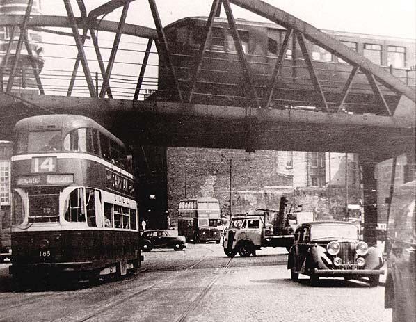 A train leaving James Street LOR Station.and heading north to Seaforth. The view is taken from Mann Island looking towards James Street.