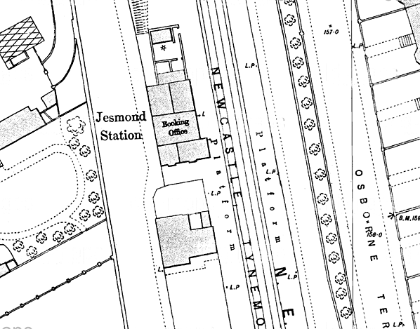 On the up platform was a wooden waiting shelter reminiscent of a large rabbit hutch. Passengers wishing to cross the line used Jesmond Road bridge which crossed over the railway to the north of the platforms. Under LNER administration Jesmond station was fitted with nameboards of a design that was probably unique to the Coast Circle stations incorporating the |