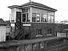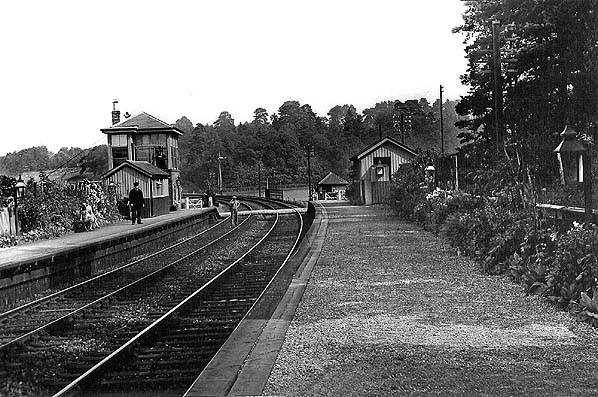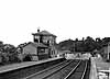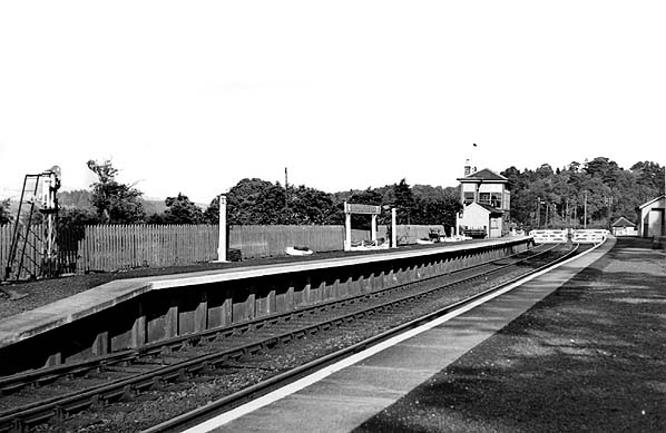 A signal box on the up platform was replaced by a second box at the north end of the down platform on 5 March 1915. This controlled the crossing and access to the goods yard which was sited on the down side south of the station. The yard comprised two sidings one of them running a short distance behind the down platform. Before the line to the south was doubled there was access to the yard from both directions but after doubling there was no access from the south with northbound trans having to reverse into the yard. The goods yard closed on 28 December 1964