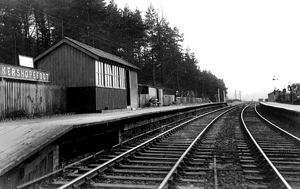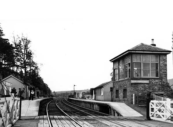 Notes: Kershope station opened in 1 March 1862 and was the last station on the Waverley route in England. The border was immediately north of the station where the line crossed the Kershope Burn. The station was later renamed Kershopefoot. In later years Kershope Foot was preferred although both appeared on tickets in BR days. The station sign always had a single word.