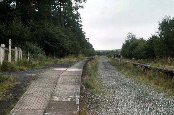 comprising terraced housing, a shop on the station platform, a school and a three-road engine shed with room for six locomotives; a two-road carriage shed, two signal boxes, a gas plant, turntable and coaling facilities were also provided. At Riccarton, the line made a junction with the Border Counties line extension running through Reedsmouth and Bellingham to the Tyne Valley line at Hexham.