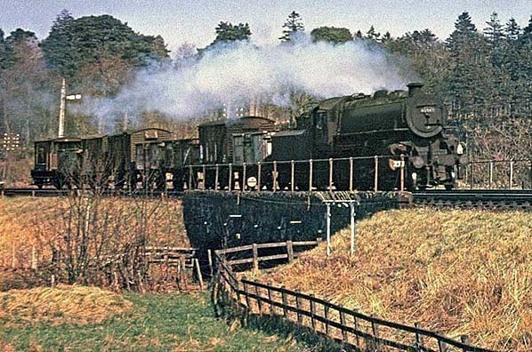 ![]() The Langholm/Newcastleton pickup freight approaching Kershope Foot on its way back to Kingmoor during the Easter holiday period in 1967. The working was from Kingmoor to Langholm, then on to Newcastleton via Riddings Junction, with the final leg back to Kingmoor.