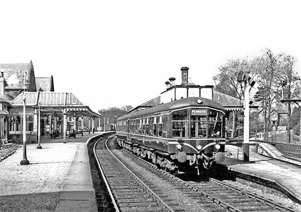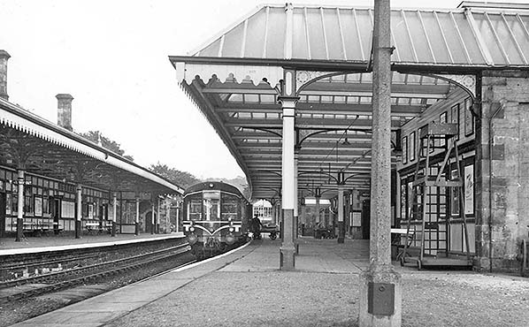 Photo from John Mann collection ![]() ‘Derby Lightweight’ diesel multiple units bound for Penrith waits in the up platform at Keswick station in April 1956.