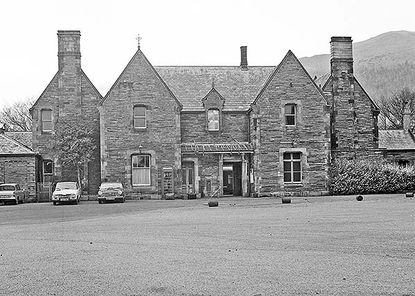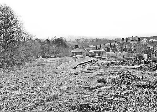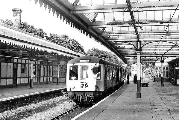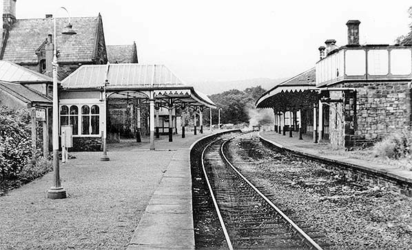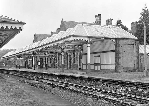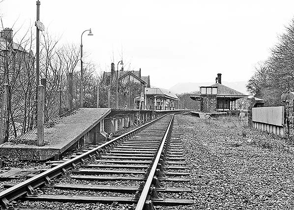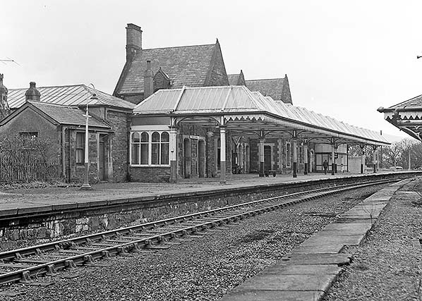 Photo from John Mann collection ![]() The main station building on the down platform is seen from the up platform c1970.