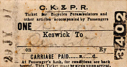 Photo from John Mann collection ![]() Looking east towards Keswick station c1970. The line was singled and the service cut back to Keswick in December 1967. The track appears recently lifted and ballast awaits removal. The old cattle dock is seen to the right of the station. A class 108 DMU stands in the platform.