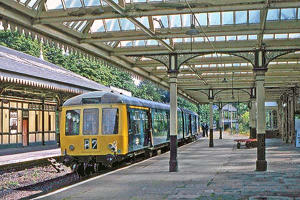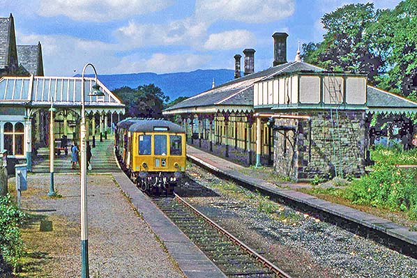 ![]() Looking west towards a Class 108 DMU at Keswick platform 1, the only platform to remain in use in summer 1971. Although the buildings remain in place the station is unstaffed. Within a year this scene will be just a memory as the line and station would close in March 1972.