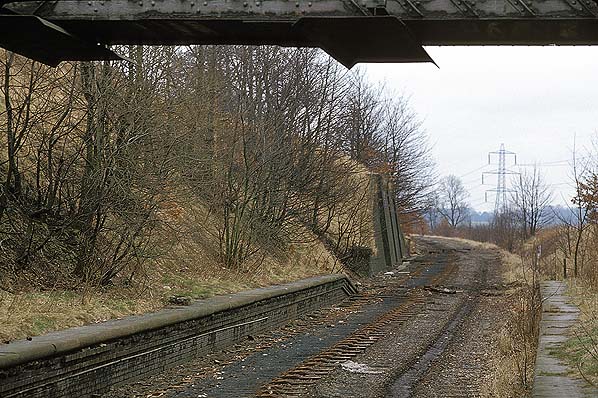 Track lifting at Killamarsh Central Station looking south in February 1983