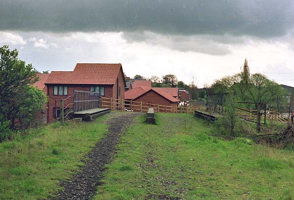 Looking south over the road overbridge over the B6058, towards Killamarsh Central station site. New housing had encroached here since the start of 1989