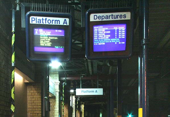 Kings Cross Thameslink - the last day 8/9th December 2007, the last train the 01.16 to Bedford can be sen on the screen.