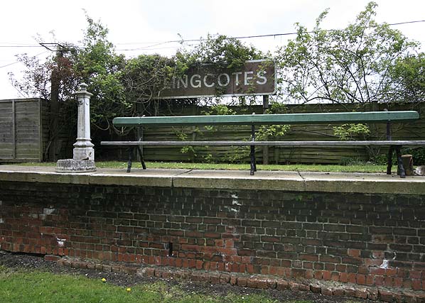 Kipling Cotes station, station name board on the down platform in May 2010. The sign