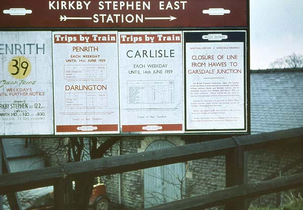 Kirkby Stephen East Station in 1959. The goods shed can be seen behind the boards which were on the bridge opposite the entrance to the station.