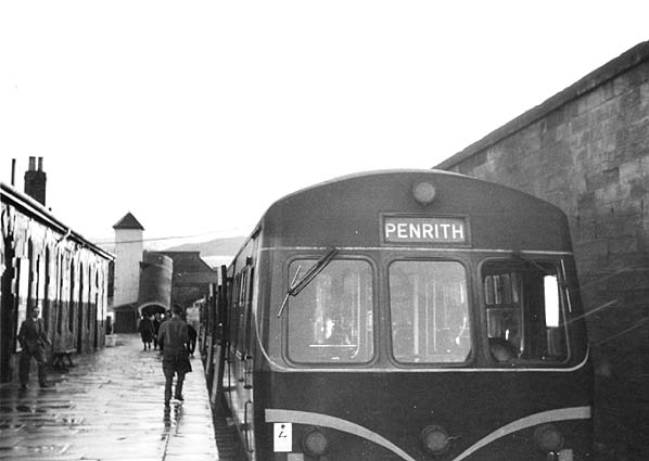 Darlington - Penrith DMU at Kirkby Stephen East Station in January 1962