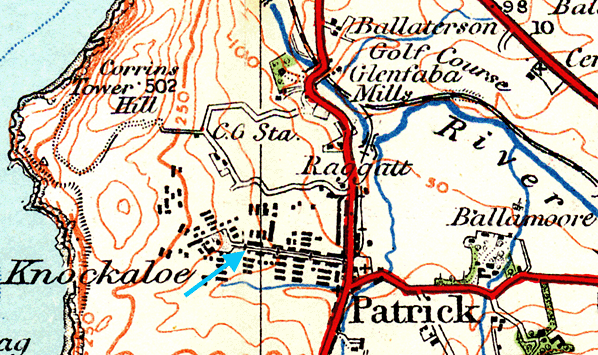 Notes: Following the outbreak of war in 1914 holiday visitors to the island dropped dramatically. An internment camp called Knockaloe was built at Partick, a mile south of Peel to house alien civilians and prisoners of war. In order to transport prisoners, a short branch railway was built from the Peel – Douglas line to serve the camp. The branch had a steep gradient and was worked by Manx Northern Railway 0-6-0T locomotive No. 4 Caledonia. The first passenger traffic reached Knockaloe on 1st September 1915.