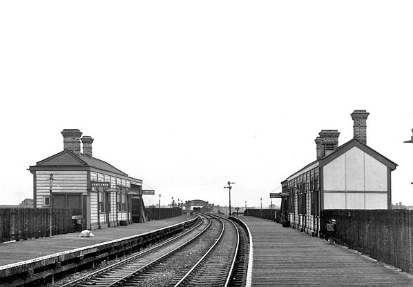 On the north platform there was an unpretentious single-storey structure with a hipped roof, resembling the street-level entrance building, whilst the south platform had a similar building but with a pitched roof.