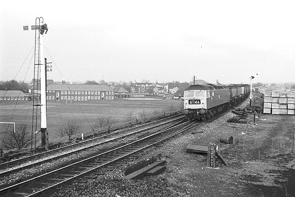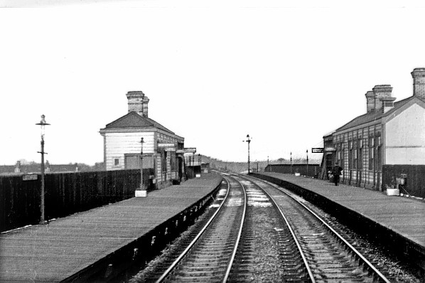 The station had goods facilities in the form of three sidings, a goods shed, weighing machine and 3-ton lifting crane located on the south side of the line to the west of the passenger station. At the western end of the goods yard, also south of the line, was an LNWR all-timber signal box which controlled the connection to the goods yard and traffic on the main line.