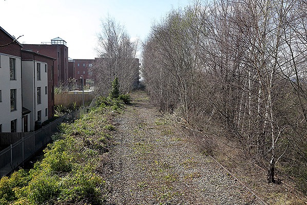In 2013 the up line at Latchford was still in situ but the station approach and yard had been developed with housing.