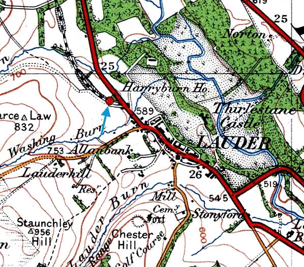 The line began at Fountainhall station at 700 ft above sea level, climbing to 944 ft near Eastertown, and descending to 600 ft at the Lauder terminus. Although Fountainhall and Lauder stations are only six miles apart as the crow flies, by rail the distance was 10½ miles. In order to avoid the obstruction of Collie Law (1,254 ft) and to serve the small village of Oxton, from Fountainhall the railway wound its way generally north-eastwards up the valley of Nethertown Burn to the Eastertown summit. It then followed the Mean Burn valley in a huge semi-circular curve to reach the Leader Water valley near Oxton, 6½ miles by rail from Fountainhall. Thereafter the route was almost direct to Lauder, where the terminus was somewhat inconveniently located at the northernmost edge of the town.