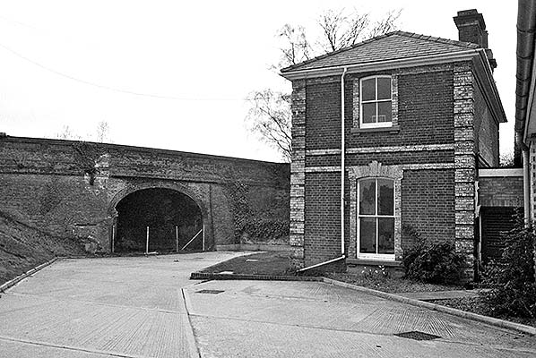 The only remaining part of the Lavenham station building seen from the station forecourt in 1985.