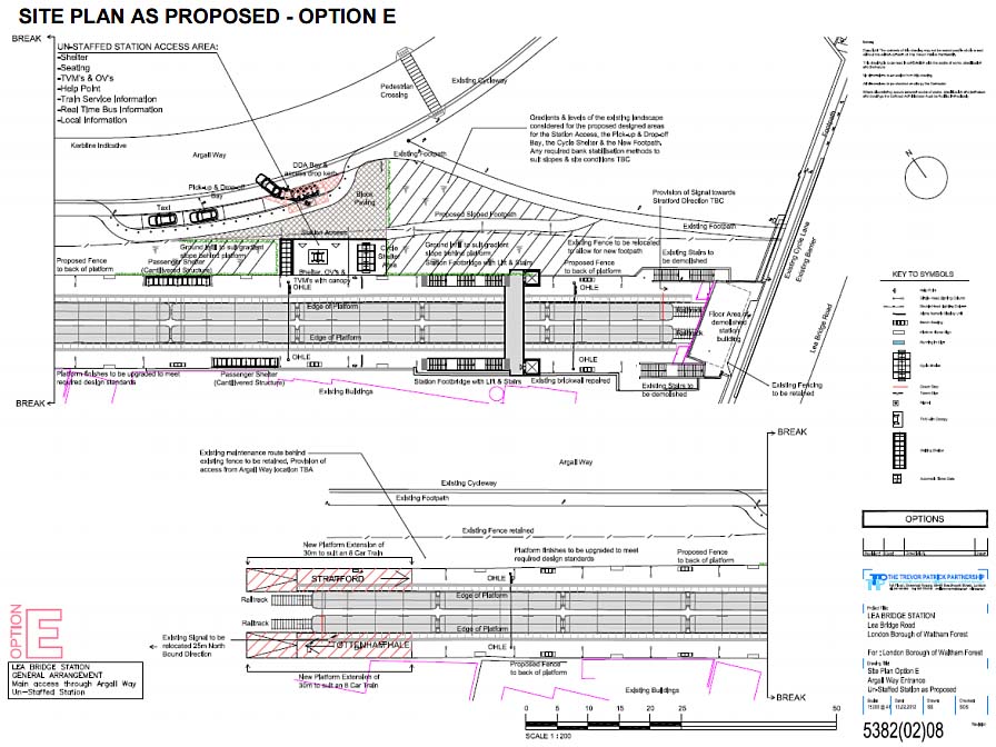 Five options for reopening the station were proposed with a 6th for later upgrading to a staffed station. Option E, the council's preferred option is shown here. This option was eventually adopted.