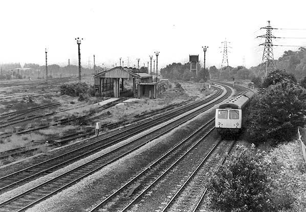 A Class 105 Cravens DMU is passing the closed Temple Mills Marshalling Yard and will soon be arriving at Lea Bridge station in 1984. Photo by Keith Ward