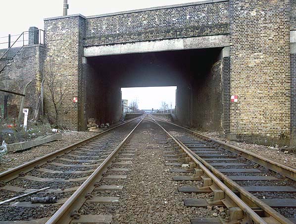 Lea Bridge station looking north from the south side of Lea Bridge Road in November 1984. Photo by Nick Catford