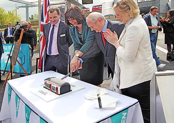 ![]() It was then time to cut the cake. Claire Perry and Councillor Chris Robbins, Leader of Waltham Forest Council, have their hands on the knife. Jamie Burles, Managing Director of Abellio Greater Anglia stands to the left with Stella Creasy, Labour MP for Walthamstow on the right.