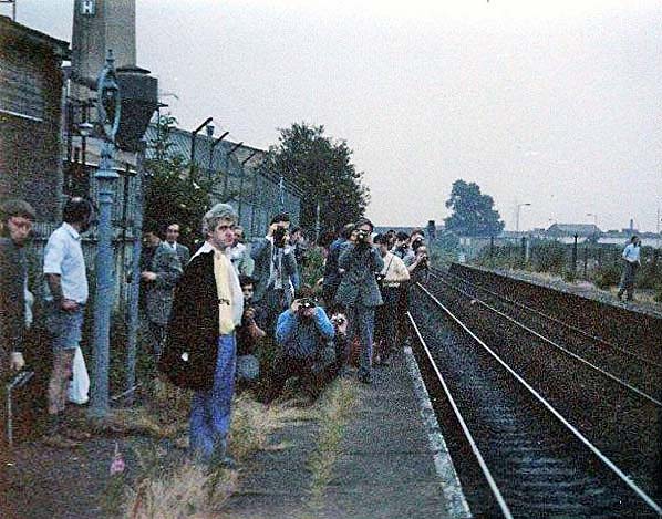 Photographers are ready as the last train for Tottenham Hale arrives at Lea Bridge station on 7 July 1985. The DMU will run through to Tottenham Hale before returning into the opposite platform. Photo by Steve Barry