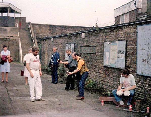 On the last day, a local acoustic punk-folk band Aunt Fortescue's Bluesrockers fronted by Graham Larkbey (right) campaigner for improved railway services, played a gig at the station. They had previously played 'on train' gigs to highlight the station’s plight and bad service and forthcoming closure.