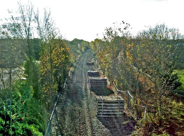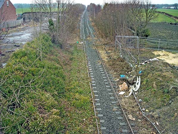 Leamside closed to passenger and goods traffic on 5 October 1953, but it was used for some years after that by Newcastle – York trains diverted because of weekend engineering works on the main line and unable to call at Durham. From Durham a shuttle service ran over the four miles to Leamside to connect with the diverted trains. The rails were subsequently lifted, except on the through lines. By May 1959 the platform and buildings had been demolished, and the tracks were slewed across their site. In 1991 British Rail ‘mothballed’ and singled the line from Pelaw to Ferryhill through Leamside with a view to possible future use. However the tracks through Leamside became rusty and overgrown, and fly-tipping took place across the track just north of the station. In 2012 the decision was taken to close the line, and by November 2012 the tracks through Leamside had been removed.
