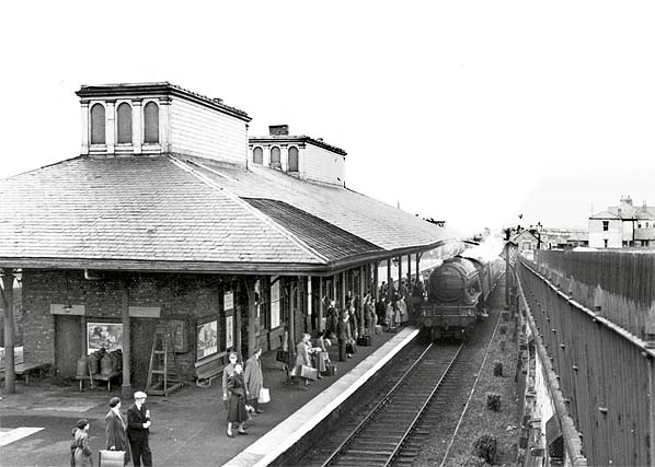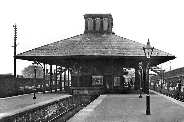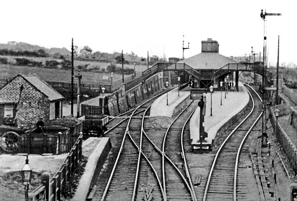 Notes: The layout of the new station at Leamside was designed for its role as an interchange with one broad island platform flanked by the through lines, and single-track bays at each end for local services that terminated there. The modest buildings in the middle of this platform were beneath a large hipped roof extending to the through-platform edges, supported by a series of columns. Two large water tanks sat on the roof, embellished by wooden panelling. Passengers reached the platforms by footbridges from pathways on each side of the railway.